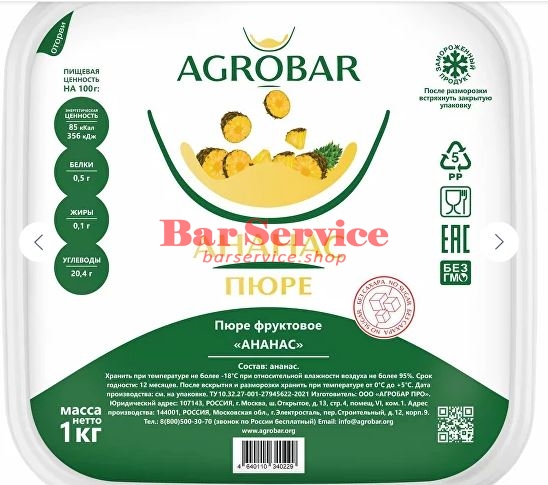 Каталог/Сиропы, пюре и продукты/Пюре, основы для коктейлей и концентраты 4028 Концентрат Ананас 1кг АГРОБАР