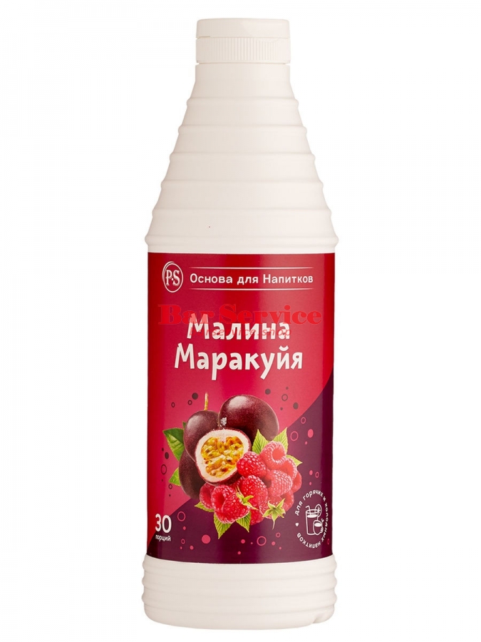 сахар, вода питьевая подготовленная, пюре малины, сок маракуйи концентрированный, регуляторы кислотности: Е 330, Е 331, натуральные ароматизаторы, загуститель пектин, консерванты: Е 202, Е 211. Без ГМО.
